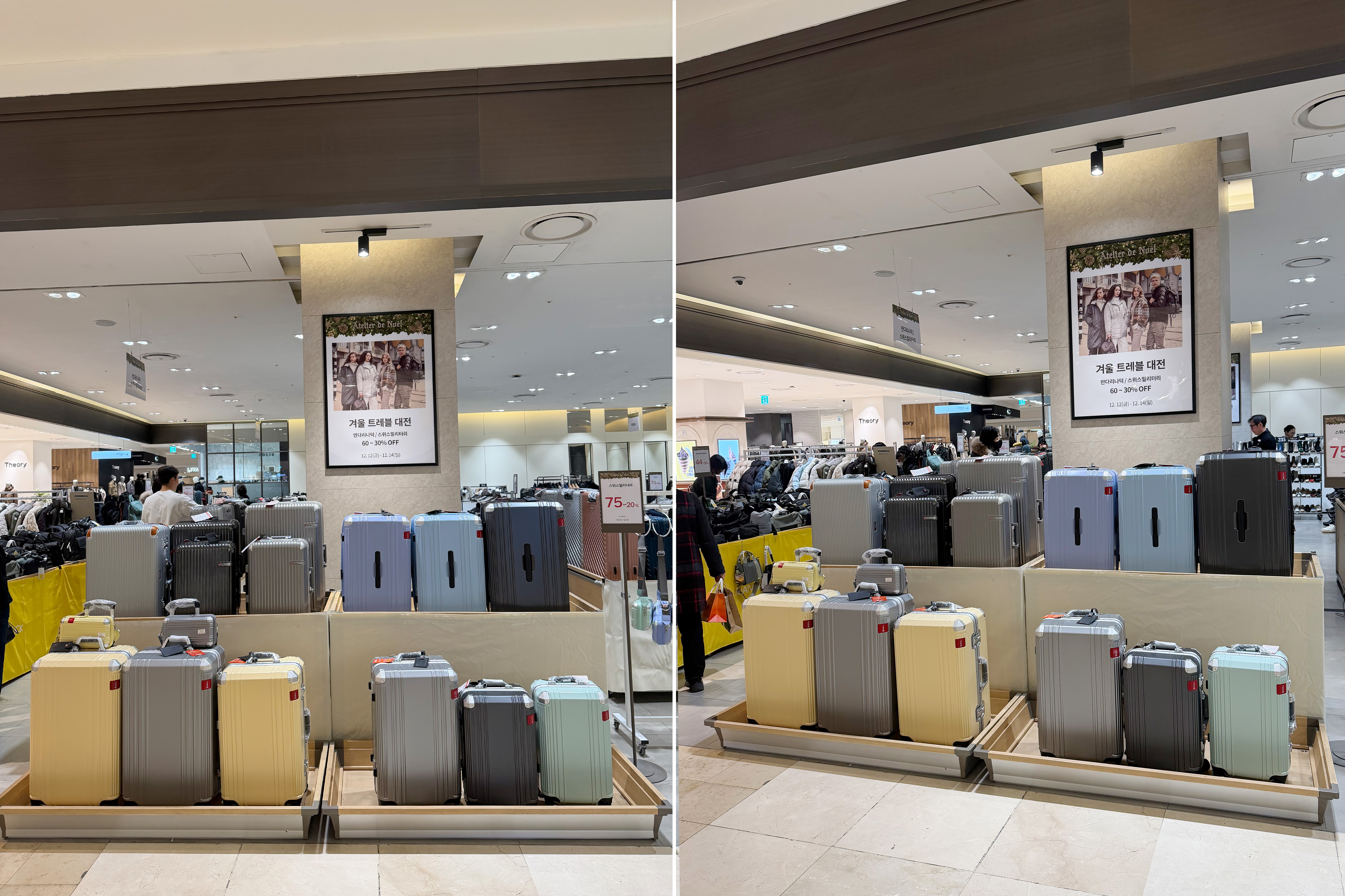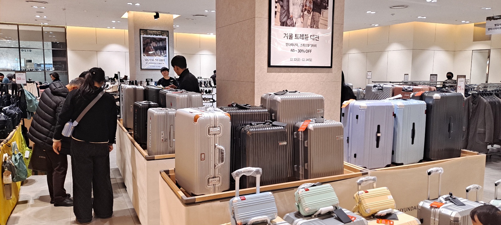현장에서는 다양한 컬러와 사이즈의 캐리어를 직접 비교해보며